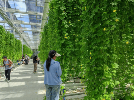 四季田园位于南澳岛核心腹地——后宅镇西山片区,毗邻黄花山国家森林公园,自然景观优越且交通便利,是南澳环岛北线乡村振兴示范带的关键节点。过去,该区域基础设施薄弱,农田未得到有效开发利用,甚至被撂荒闲置。在深圳对口帮扶协作汕头指挥部的支持下,深业集团与南澳县后宅镇村开展深度合作,依托南澳县旅游资源丰富的特点,融合数字农业、农业种植、休闲民宿等业态打造特色鲜明的农旅休闲综合体,也是广东首个海岛田园综合体。在下午的研学中,师生们实地学习了依托绿色生态资源,因地制宜开展“高科技农业+文旅融合”的现代农业复合发展模式,并深入观摩借鉴了乡村振兴的成功案例。