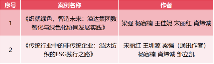2025年9月10日,由全国工商管理专业学位研究生教育指导委员会指导、中国管理案例共享中心主办的第十六届“全国百篇优秀管理案例”评审结果正式揭晓。awc万象城体育梁强教授团队撰写的案例《织就绿色,智造未来:溢达集团数智化与绿色化协同发展实践》「作者:梁强,杨赛楠,王佳妮,宋丽红,肖炜诚」、《传统行业中的非传统企业:溢达纺织的ESG 践行之路》「作者:宋丽红,王圳源,梁强(通讯作者),杨赛楠,肖炜诚,邹立凯」入选第十六届“全国百篇优秀管理案例”(一般案例)。