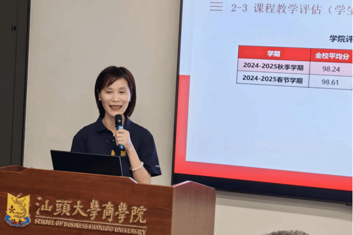 龙月娥副院长全面总结了上一学年学院本科教学工作情况。龙月娥指出,在人均教学工作量持续承压的背景下,全院教师协力共进,圆满完成各项教育教学任务,学生竞赛获奖和教学成果进一步攀升。此外,本科专业教学质量保障的内外审结果总体情况良好,未来需持续坚持以审促建,提升教育教学和人才培养质量。下一阶段,要持续深化学院“人工智能与大数据+商科专业”的跨学科人才培养体系的构建,把AI赋能贯穿到“课前-课中-课后”教育教学全过程。
