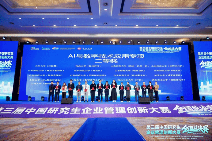 本赛事作为“中国研究生创新实践系列大赛”主题赛事,由教育部学位管理与研究生教育司指导,中国学位与研究生教育学会和中国科协青少年科技中心联合主办,全国工商管理专业学位研究生教育指导委员会提供学术支持。本次大赛以推动数字经济时代管理创新为核心,共吸引全国461支队伍参加AI与数字应用专项,经激烈角逐,47支队伍晋级全国总决赛。