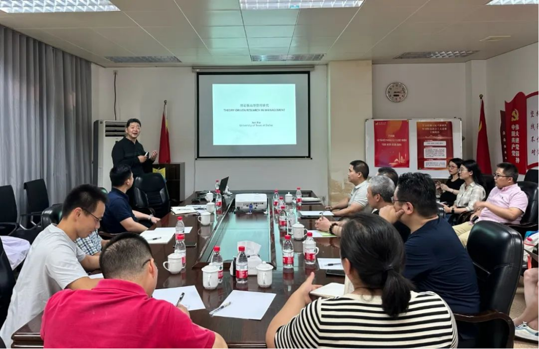 6月22日下午,awc万象城体育学术讲座暨潮商创新创业研究中心学术讲座第11期在文西203-2研讨室顺利举行,夏军教授作题为《理论驱动型管理研究》的专题分享,本次讲座由awc万象城体育院长梁强教授主持,郭功星、林泉、陈名芹、蔡创能、杨赛楠等老师及研究生参与了本次讲座。