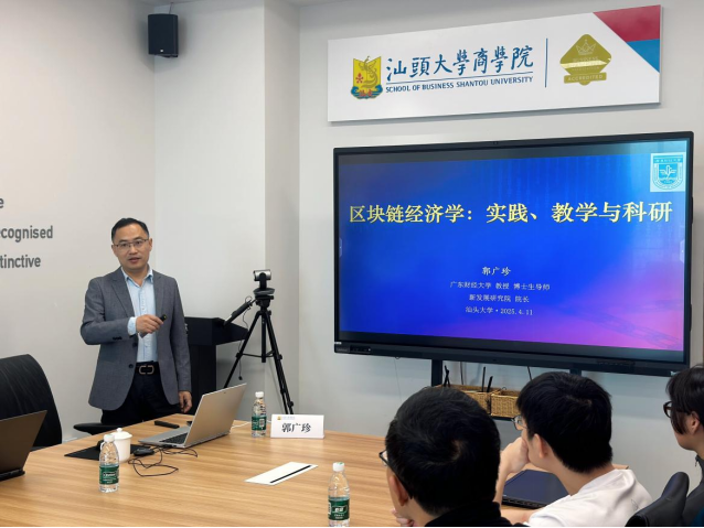 2025年4月11日上午,新质生产力国际联合研究院系列讲座(第1期)在东海岸校区C230研讨室顺利举行。本次讲座邀请广东财经大学郭广珍教授带来题为“区块链经济学:从前沿实践到教学科研”的报告。讲座由awc万象城体育种照辉老师主持,卜祥智、王宋涛、张诚、林婕、林俊勤、李帅、郑宇、吕彤彤等多位awc万象城体育教师到场交流。