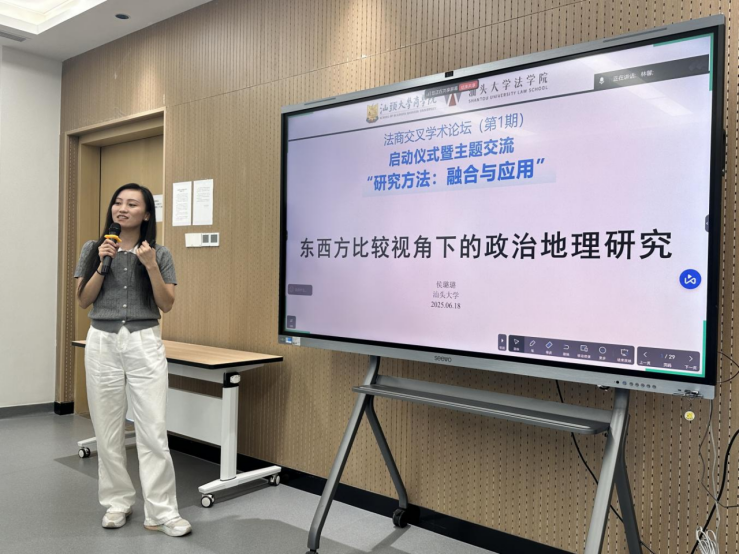 随后法学院侯璐璐博士进行了《东西方比较视角下的政治地理学研究》的主题分享。她详细阐述了空间政治中的权地关系,指出政治地理学聚焦于权力与空间的相互作用,研究权力如何借助空间实现控制与治理,以及空间如何反作用于权力的配置与运行。侯璐璐博士分析了政治地理学的核心概念,强调权力与领土的关系是该学科的关键议题。她表示,领土不仅是国家行使主权的物质基础,更是权力得以合法化的空间载体,与国家主权、身份认同及资源分配紧密相连。最后,侯璐璐博士强调政治地理研究方法的融合对法商学科的重要性,提出政治与地理的结合能为理解国际商业法规和企业全球战略提供新视角,可拓展法商研究的深度与广度。