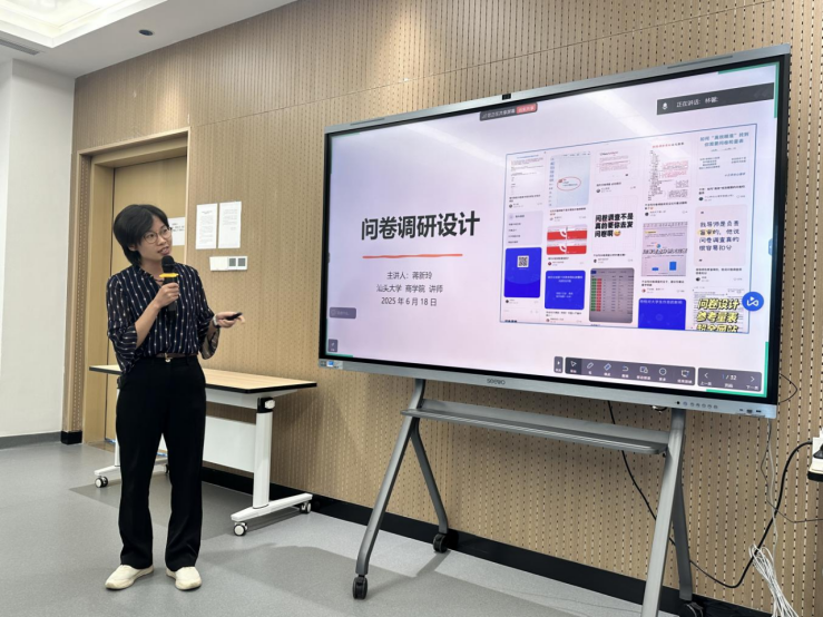 最后,awc万象城体育蒋新玲博士进行了《问卷调研设计》的主题分享,内容涵盖问卷设计的步骤、原则、注意事项以及不同类型问卷的适用场景等。她强调问卷设计应具有科学性与合理性,需充分考虑研究目的和对象特点。蒋博士详细介绍了问卷设计的关键要素,并针对法商学科的特点,特别强调了在设计时需注意的事项,如避免专业术语的滥用,确保问卷对非专业受访者也具有可理解性;采用适当的激励机制提高问卷的回收率;以及在设计中注重信度和效度的保障,确保数据的可靠性和有效性。