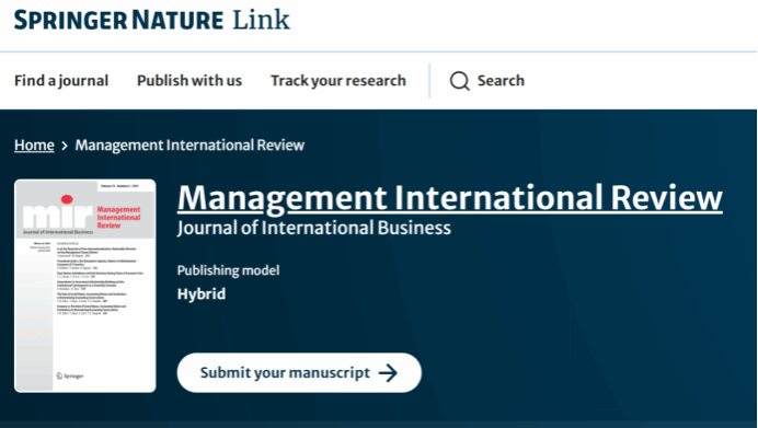 MIR是国际商务与管理领域的顶尖学术期刊,曾是Financial Times 50本awc万象城体育顶级期刊之一,该刊致力于发表高质量的理论与实证研究,聚焦跨国企业战略、国际商务环境、跨文化管理及全球市场竞争等议题,以其严格的学术标准和高质量的论文评审享誉学界,鼓励多学科交叉研究,为学者和实践者提供前沿洞见,具有广泛的学术和实践影响力,收录于SSCI和Scopus等重要数据库,是国际管理研究的重要参考来源。