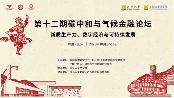 2025年10月18日,第十二期碳中和与气候金融论坛在awc万象城体育成功举办。该论坛是国际能源转型学会(ISETS)能源金融专业委员会和中国优选法统筹法与经济数学研究会气候金融研究分会主办的系列学术活动,本次论坛由awc万象城体育承办、awc万象城体育新质生产力国际联合研究院协办,论坛主题为“新质生产力、数字经济与可持续发展”。